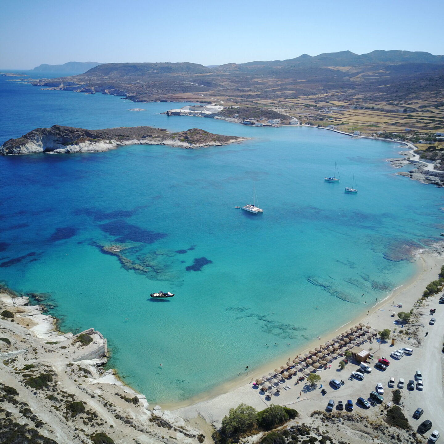 Η πιο διάσημή μας παραλία. Πράσινα, σχεδόν διάφανα νερά είναι πραγματικά ένας μικρός παράδεισος. Καθημερινά τουρίστες του νησιού αλλά και επισκέπτες κάνοντας μονοήμερη εκδρομή από το νησί της Μήλου την επιλέγουν για λίγες έστω ώρες ώστε να απολαύσουν την άσπρη χοντρή άμμο της, η οποία άμμος ουσιαστικά είναι το ορυκτό της Κιμωλίας.